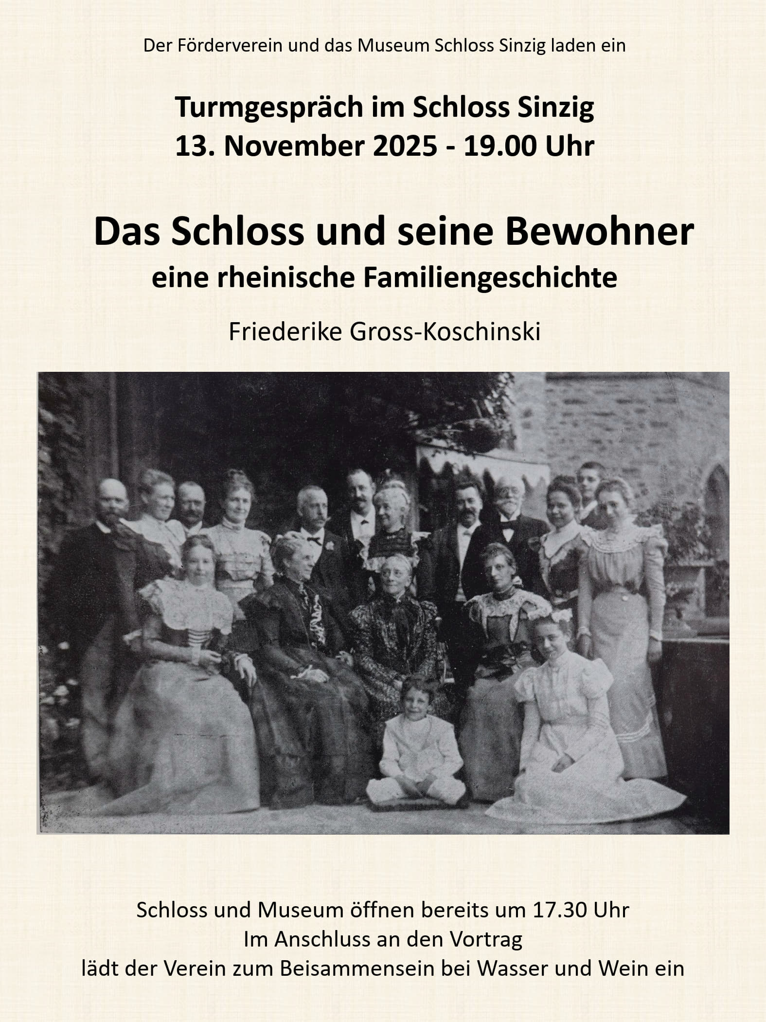 Sinzig. Wem hat Sinzig sein Schloss zu verdanken und warum wurde genau an dieser Stelle 1855 ein neugotischer Bau errichtet? Diese Fragen interessierten so viele Menschen beim Turmgespräch des Fördervereins Denkmalpflege und Heimatmuseum im Schloss, dass noch zusätzliche Stühle in den Vortragssaal des Schlosses gebracht werden mussten. Vorstandsmitglied Friederike Gross-Koschinski hatte zum Thema „Das Schloss und seine Bewohner – eine rheinische Familiengeschichte“ eingeladen.